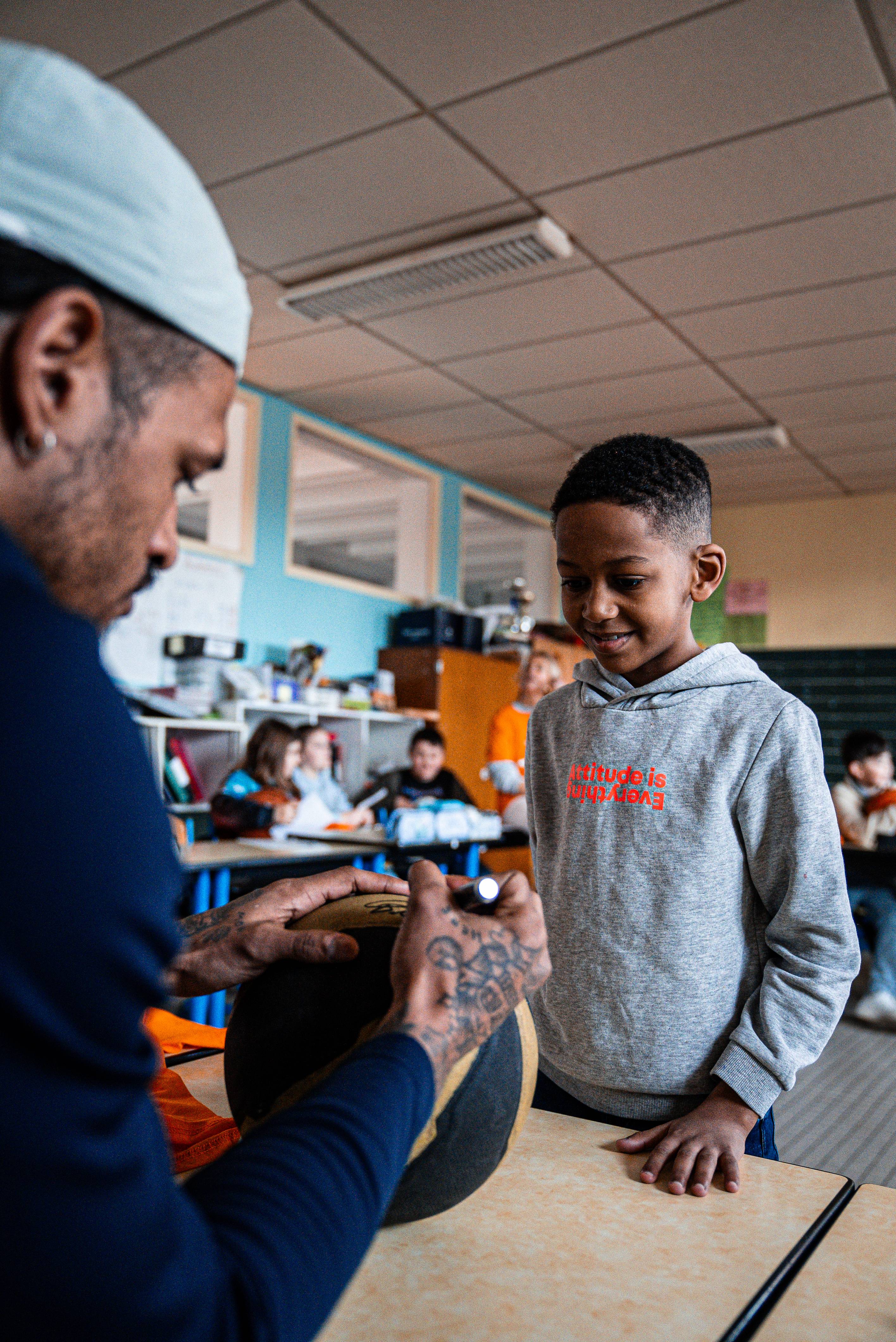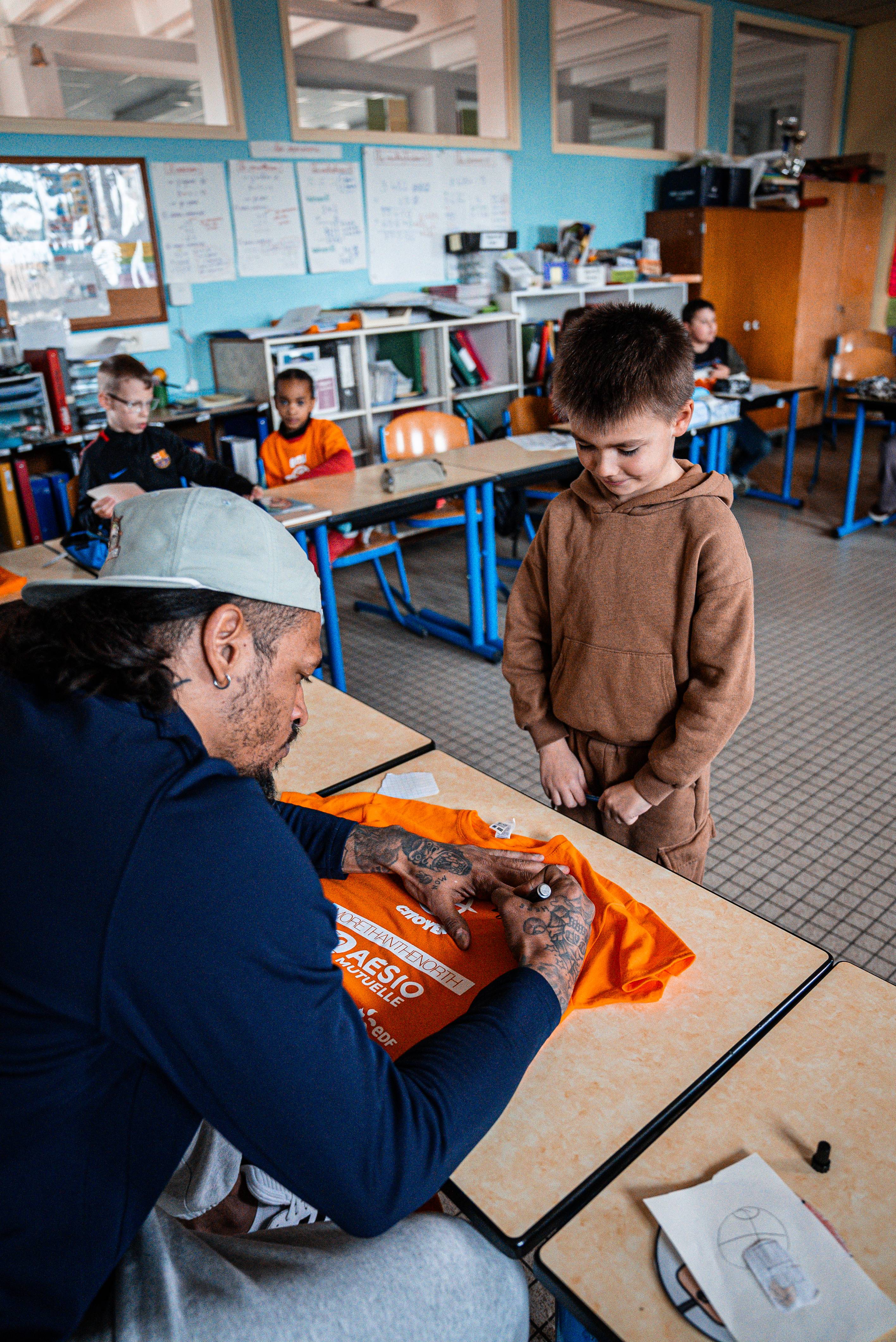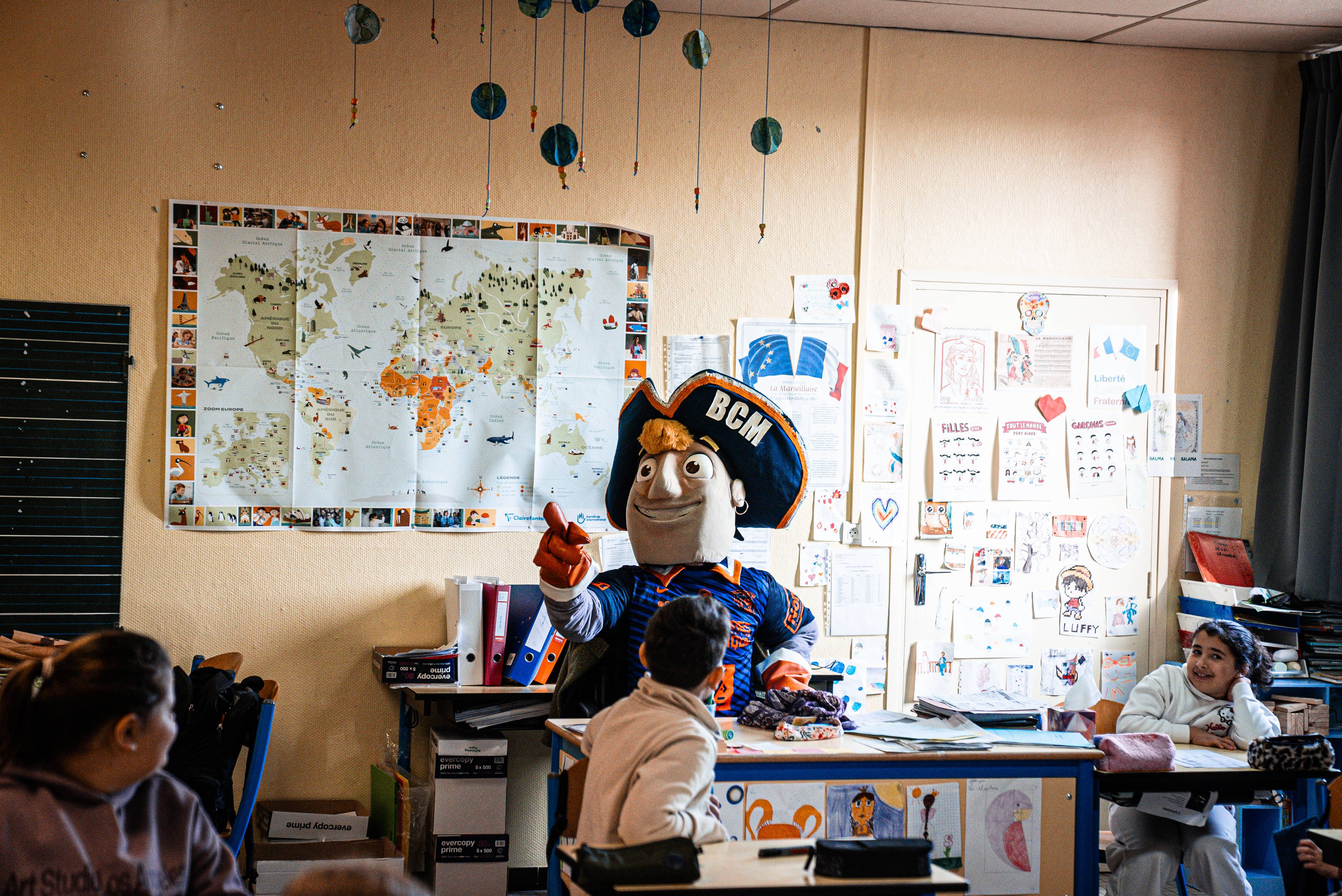 Dans le cadre du programme BCM Citoyen, notre numéro 19, Chris Babb, ainsi que notre mascotte Texel, se sont rendus à l’école primaire Paul Verlaine à Grande-Synthe. Les enfants ont présenté à notre joueur un projet sur lequel ils ont travaillé depuis le début de l’année. Il portait sur la NBA : ils se sont intéressés à la ligue, aux franchises et, à leur tour, ont créé une équipe, de la conception d’un logo à l’imagination d’une mascotte. C’est un beau travail où les enfants ont été pleinement accompagnés, et Chris a même pu repartir avec quelques souvenirs.