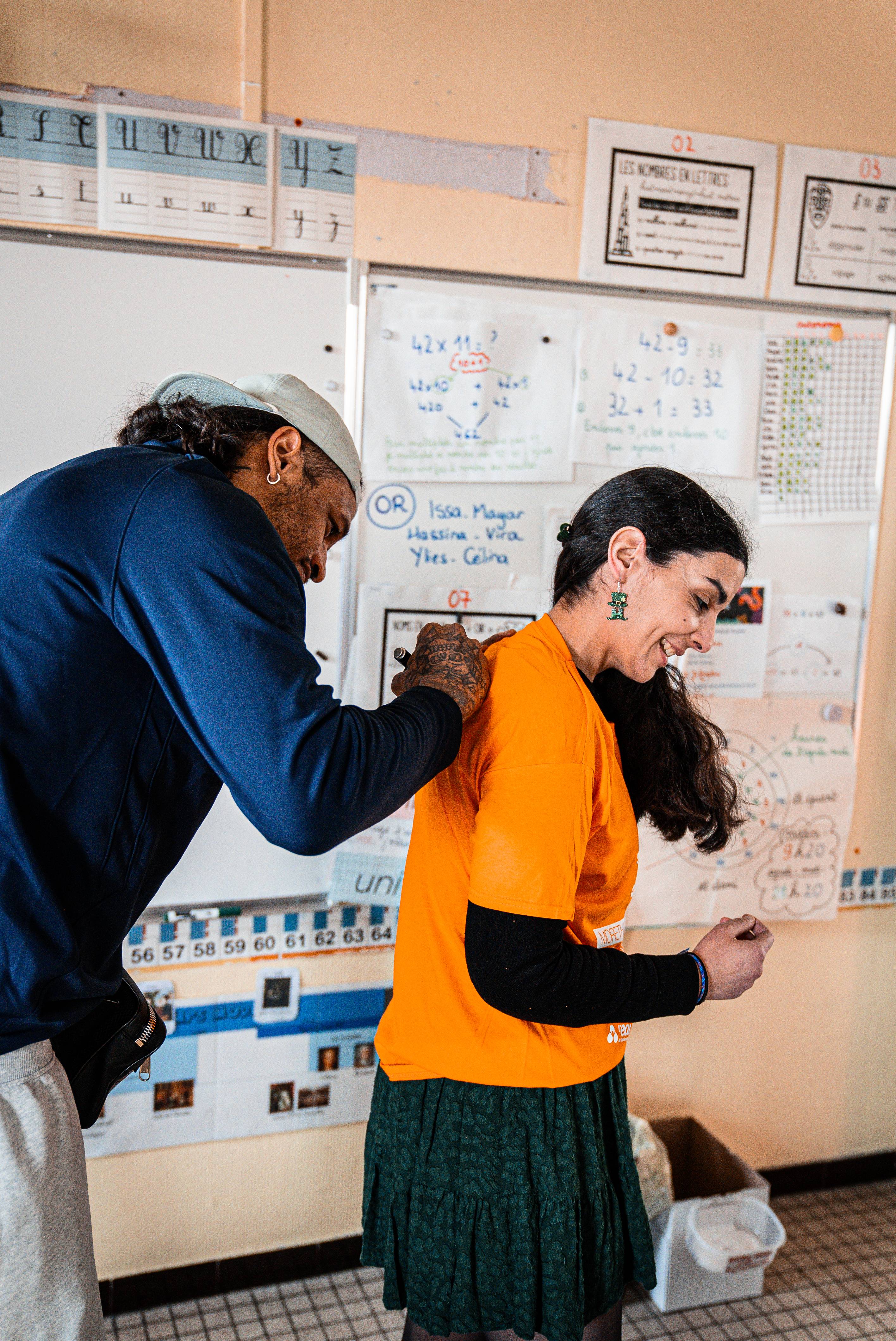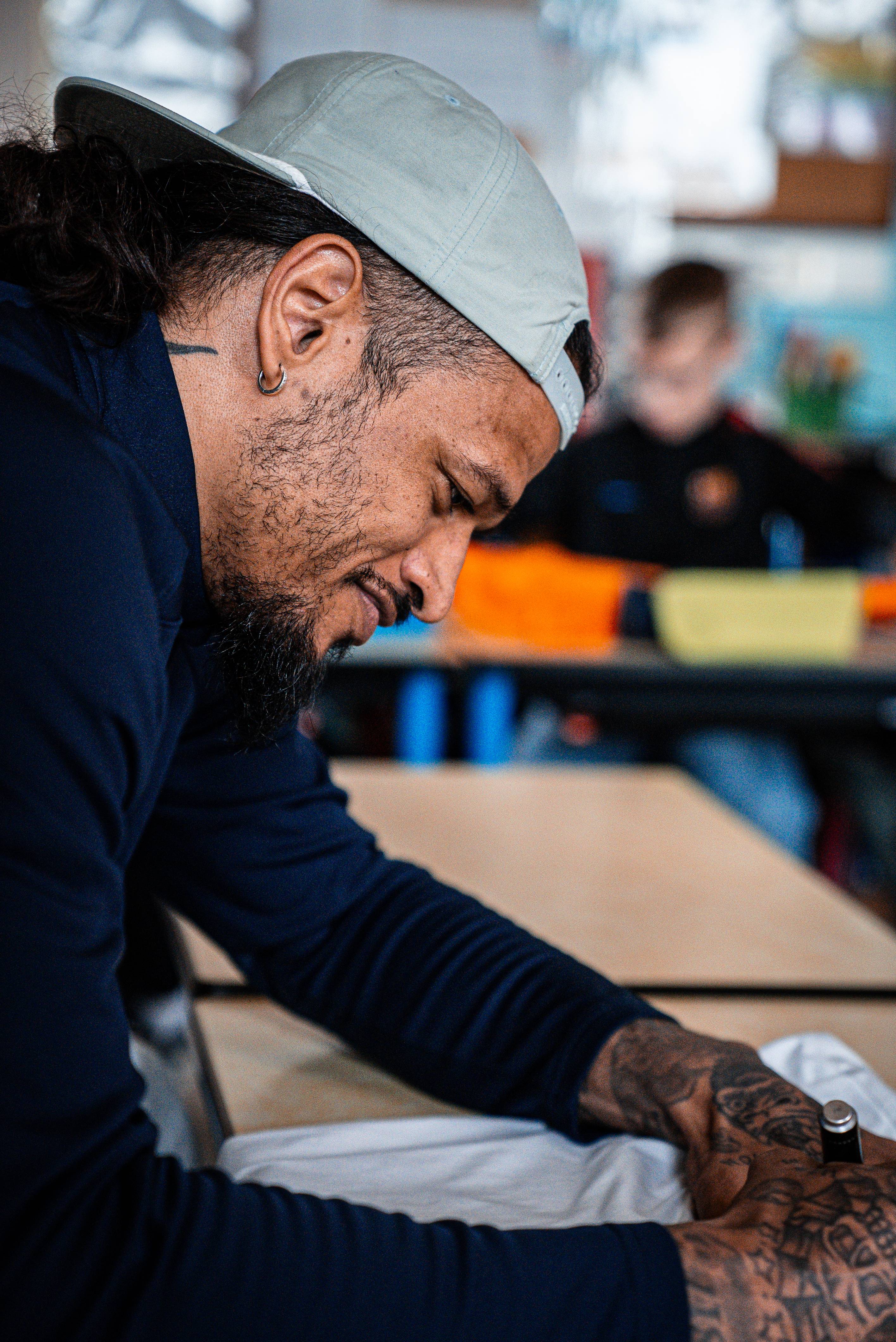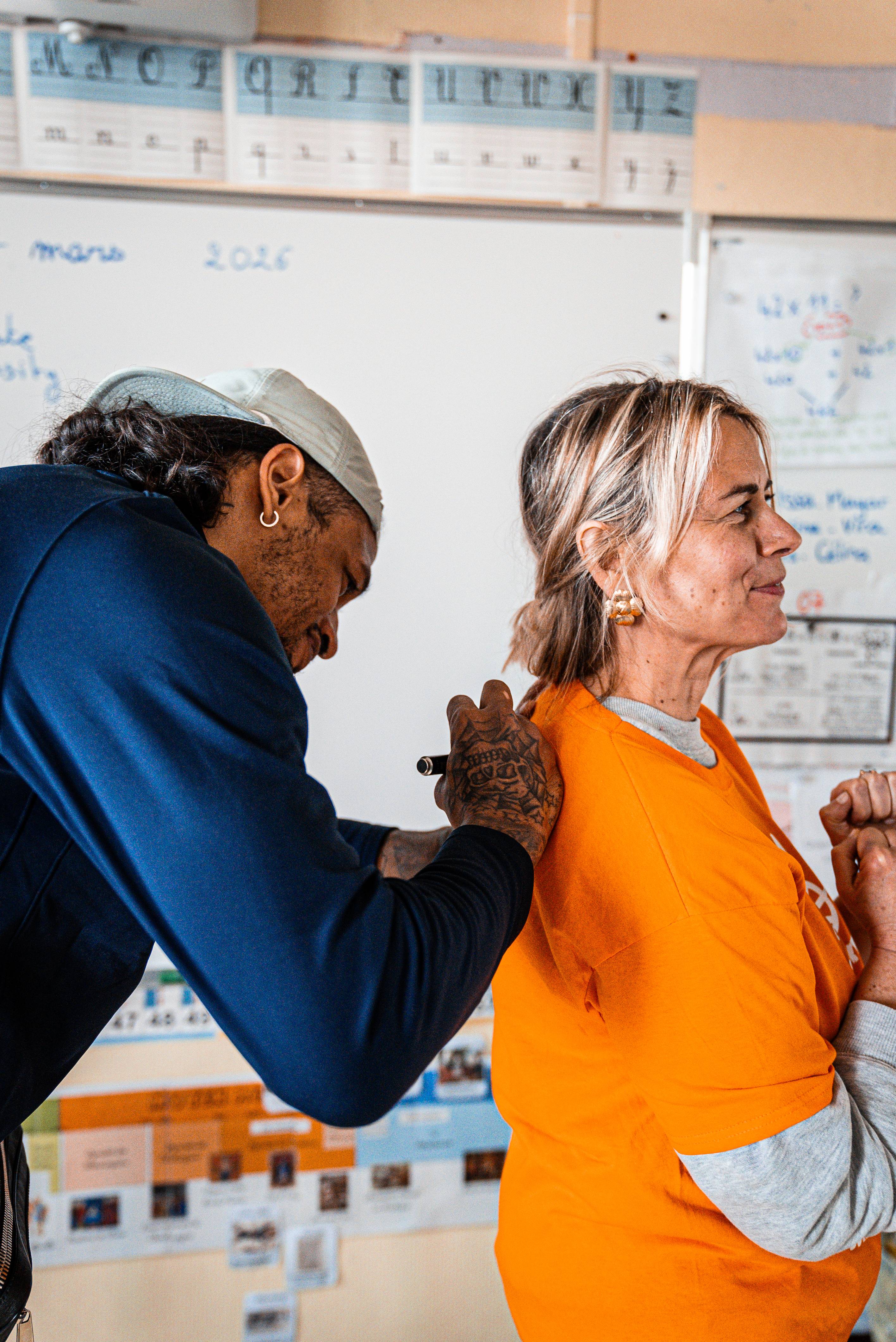 Ils ont ensuite participé à une séance de tirs dans la cour de récréation, un moment convivial et simple où chacun affichait le sourire. La matinée s’est terminée autour d’un goûter, où nous avons tous pu discuter, et les enfants ont même pris part à poser des questions en anglais. Ce type de visite reste gravé dans la mémoire des plus jeunes, leur apporte le sourire et permet de dépasser la barrière de la langue.