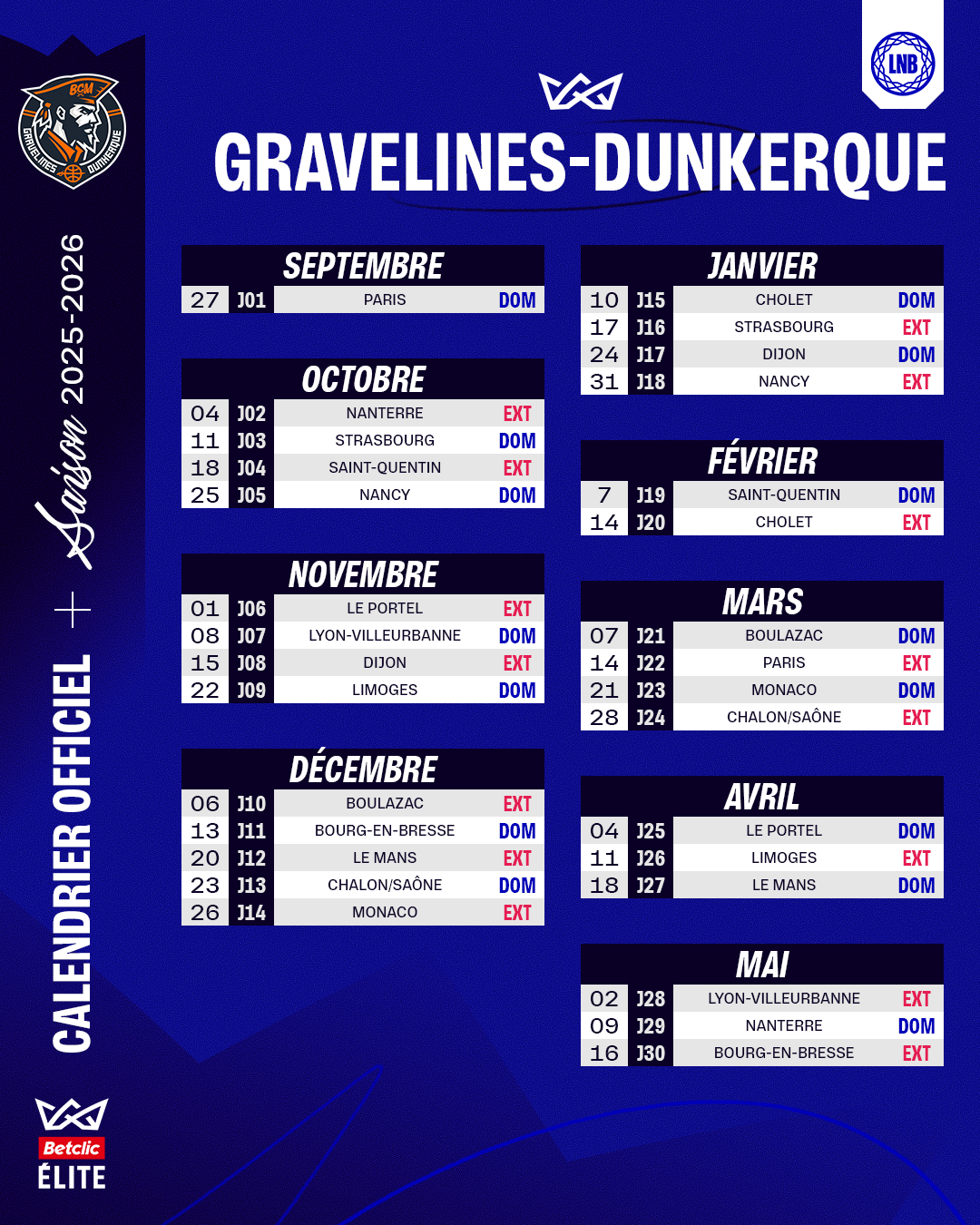 Découvrez l'ensemble des dates et préparez-vous à vibrer pour cette nouvelle saison en #BetclicELITE !👇